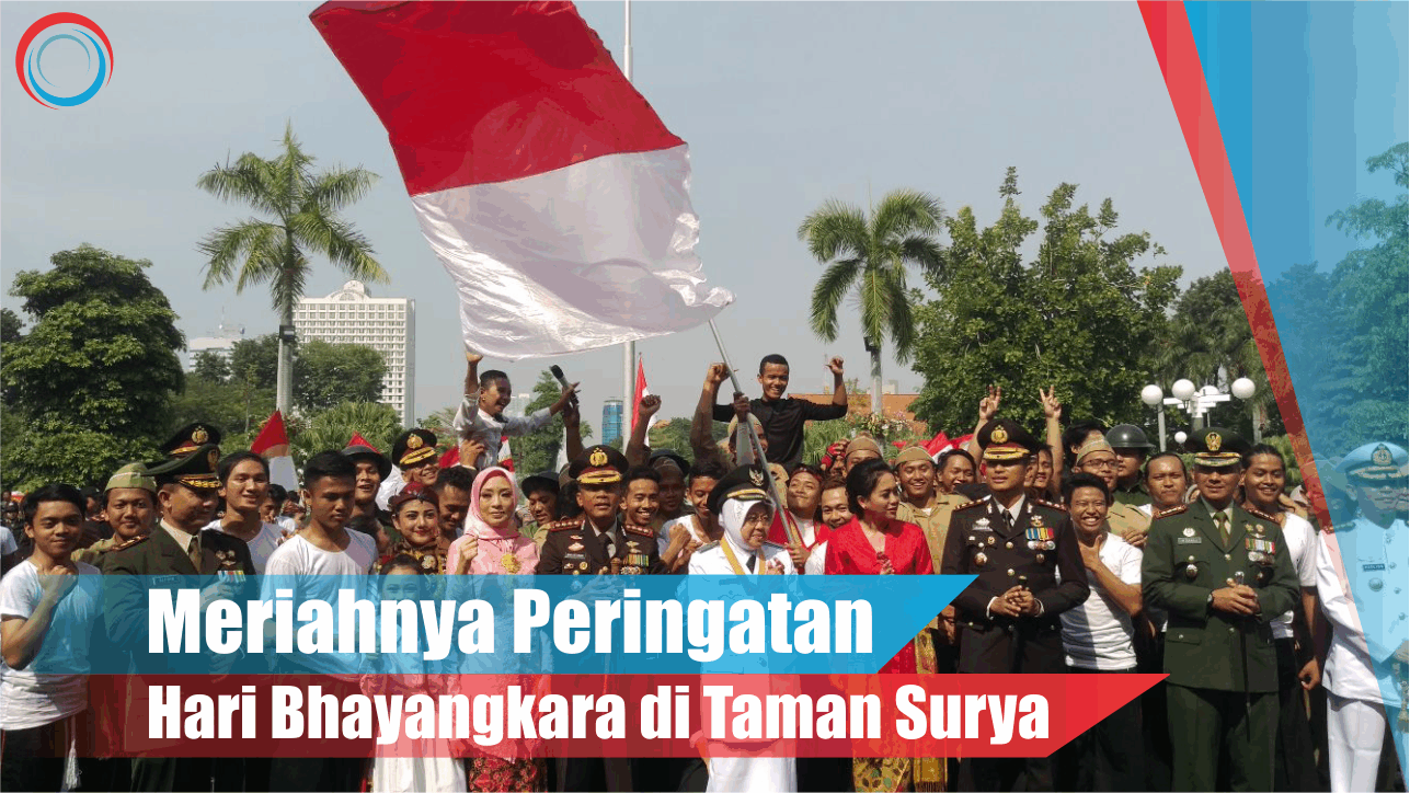 jatimnow.com - Hari ini Polrestabes Surabaya menggelar upacara peringatan HUT Bhayangkara ke-72. Peringatan Hari Bhayangkara tahun ini, cukup spesial karena digelar di halaman Taman Surya, Balai Kota Surabaya, Rabu (11/7/2018).