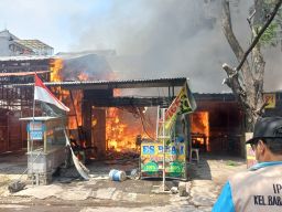 Surabaya - Kebakaran melanda tiga stand jualan yang berada di Jalan Pondok Benowo Indah, Kecamatan Pakal, Surabaya. Akibat peristiwa tersebut satu unit motor hangus terbakar dan 2 orang pemilik stand terluka.