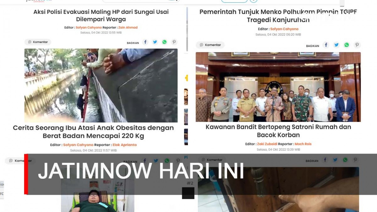 jatimnow - Aksi polisi evakuasi maling HP dari sungai usai dilempari warga hingga kawanan bandit bertopeng satroni rumah dan bacok korban, inilah jatimnow hari ini, Selasa (4/10/2022).