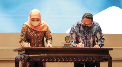 Dalam kesempatan tersebut, Gubernur Khofifah bersama Kepala ANRI, Imam Gunarto, turut melakukan penandatanganan Nota Kesepahaman antara ANRI dengan Pemprov Jatim tentang Sinergitas Program Bidang Kearsipan.