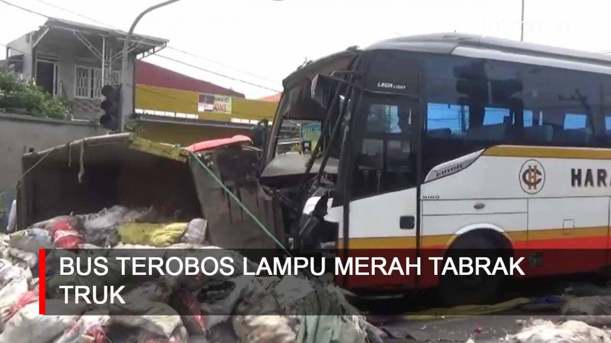 Video: Terobos Lampu Merah, Bus Tabrak Truk
