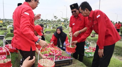 jatimnow.com - DPC PDI Perjuangan Surabaya menggelar doa bersama dan tabur bunga di makam Sekjen DPP PDI 2005-2010 Sutcipto dan Luwih Soepomo di Kompleks Makam Keputih, Surabaya, Kamis (12/1/2023).