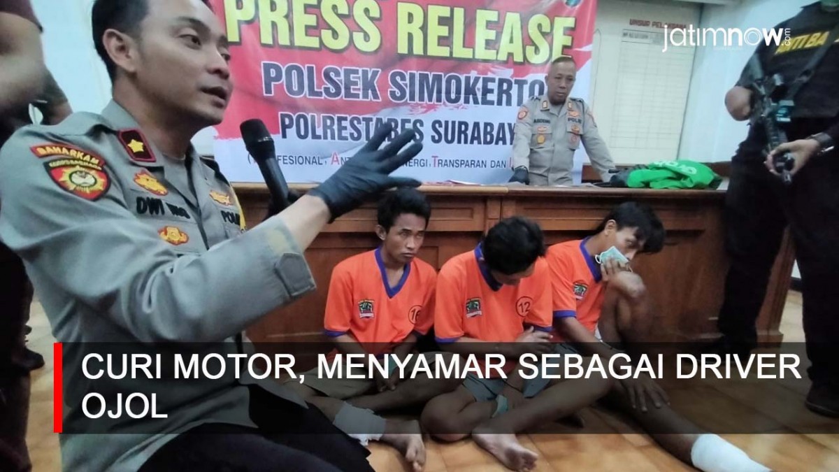 jatimnow.com - Komplotan bandit yang biasa menyamar sebagai driver ojek online (ojol) saat mencuri motor di Surabaya dilumpuhkan kakinya oleh anggota Unit Reskrim Polsek Simokerto.