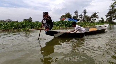 jatimnow.com - Banjir luapan sungai Bengawan Jero Lamongan membuat satu desa terisolir. Warga mulai berfikir untuk mengungsi hingga mempergunakan perahu sebagai alat transportasi.