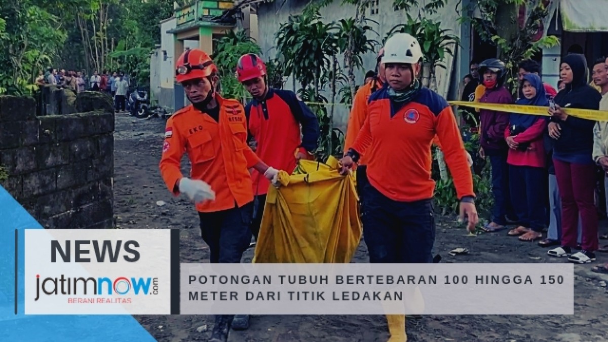 Petugas Badan Penanggulangan Bencana Daerah (BPBD) Kabupaten Blitar menemukan potongan-potongan tubuh manusia bertebaran di area sawah, tepatnya 100 hingga 150 meter dari titik awal kejadian ledakan di rumah warga Desa Karangbendo, Kecamatan Ponggok, Kabupaten Blitar.