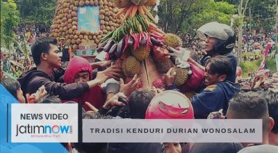 Pengunjung rela berdesakan dan berebut gunungan durian, tak sedikit warga yang terjatuh hingga mengalami luka lecet.