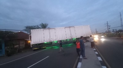 "Truk dari arah barat, dengan kecepatan sedang. Begitu dia oleng nabrak media jalan, terus nabrak pohon, lalu menutup jalan yang arah dari timur," ungkapnya.
