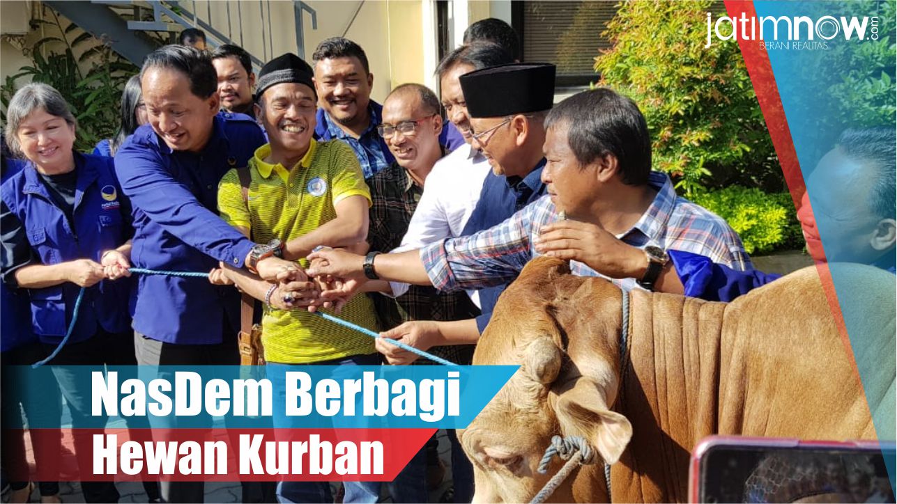 jatimnow.com - Menyambut Hari Raya Idul Adha, DPW Partai NasDem Jawa Timur menyumbangkan hewan kurban sapi dan kambing ke berbagai organisasi masyarakat maupun komunitas wartawan serta masyarakat, Minggu (20/8/2018).