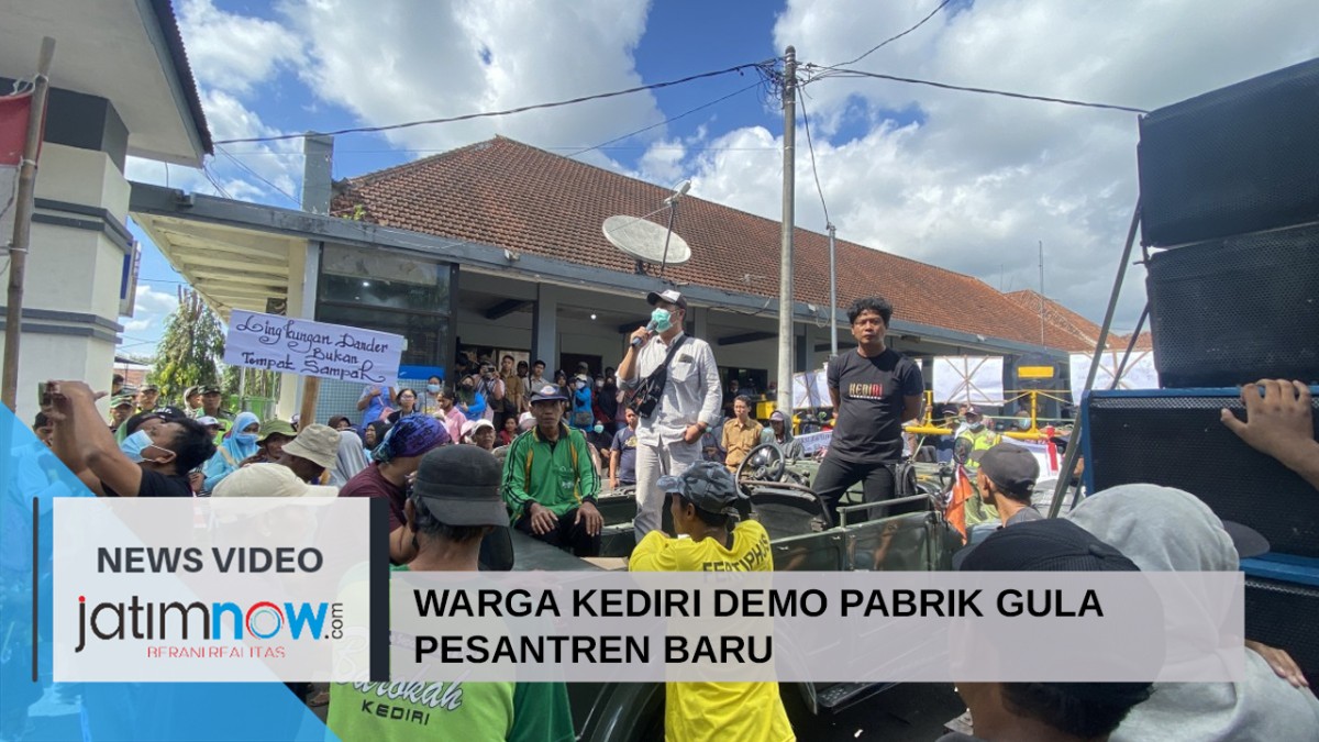 jatimnow.com - Ratusan warga di Kediri melakukan aksi unjuk rasa di PG Pesantren Baru, Kota Kediri, Selasa (27/6/2023). Mereka memprotes dampak polusi yang ditimbulkan pabrik gula tersebut.