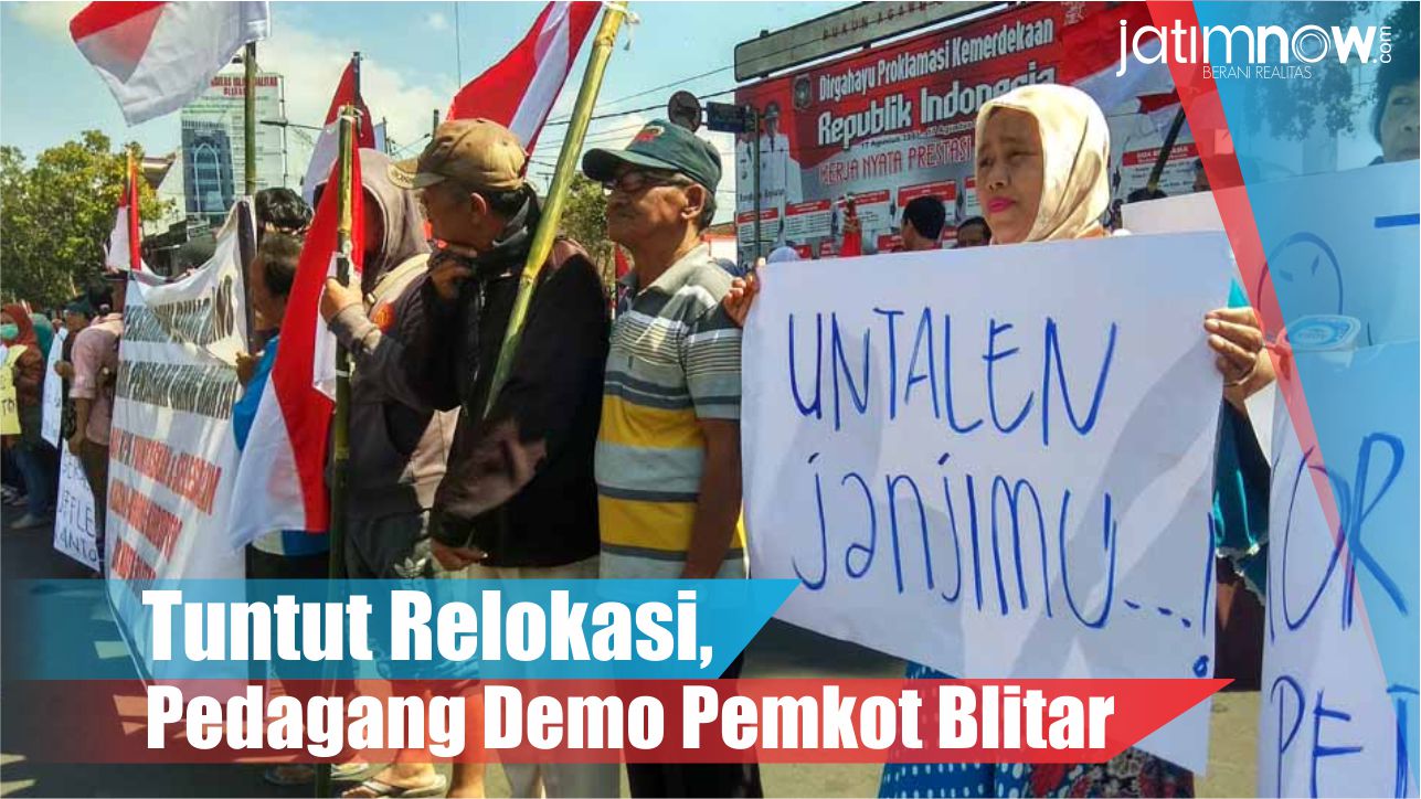 jatimnow.com - Puluhan Pedagang Pasar Legi dan Pedagang Eks Jalan Mastrip yang tergabung dalam Aliansi Pedagang Kota Blitar menggeruduk Kantor Pemkot Blitar, Kamis (23/8/2018). Aksi ini terkait ketidakjelasan Pemkot Blitar dalam membangun Pasar Legi dan Merelokasi pedagang Eks Jalan Mastrip.