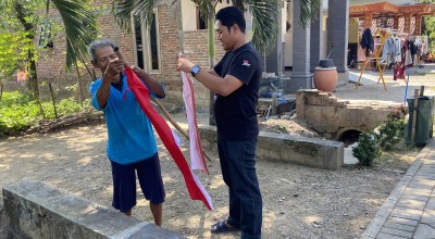 “Sesuai usia, ini tadi kami bagikan di warung. Juga d rumah-rumah. Saya cari yang tidak pasang bendera maupun benderanya lusuh atau rusak. Dananya dari uang pribadi,” katanya.