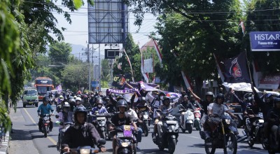 Ratusan suporter mengiringi perjalanan bus yang mengangkut Yusuf Meilana dan kawan-kawan sejak di Bendung Waru Turi sampai menuju mess Persik Kediri di Jalan PK Bangsa Kota Kediri.
