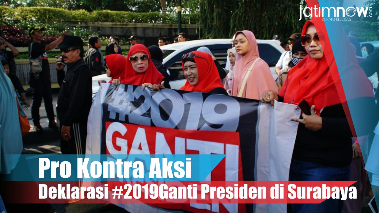 jatimnow.com - Pro Kontra Aksi Deklarasi #2019Ganti Presiden di Surabaya, Minggu, (26/8/2018). Aksi massa ini terjadi di sekitaran Tugu Pahlawan, Jalan Indrapura dan di Jalan Tunjungan (depan Hotel Majapahit) Surabaya.