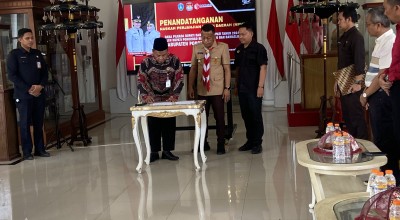 jatimnow.com - Bupati Ponorogo, Sugiri Sancoko, telah menandatangani Naskah Perjanjian Hibah Daerah (NPHD) untuk Pemilihan Kepala Daerah (Pilkada) 2024.