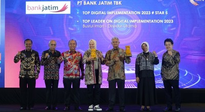 Kemudian, Bank Jatim juga dianggap berhasil dalam hal implementasi teknologi digital dan penggunaannya sangat efektif di semua divisi/unit kerja sehingga berdampak signifikan terhadap kinerja, daya saing, dan layanan pelanggan/masyarakat.