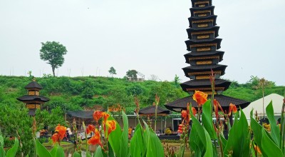 Di lokasi ini, terdapat spot utama, yaitu bangunan mirip pura yang dikelilingi oleh danau serta pura bertingkat, yang menjadi daya tarik utama pengunjung. Danau tersebut, menawarkan wahana naik perahu yang berbayar Rp10 ribu per orang.