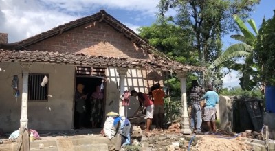 Korban, jelas dia, mengalami luka-luka ringan, bagian wajah dan paha sebelah kiri. Rumah Katimun juga rusak. Dinding jebol berdiameter kurang lebih 1 meter.