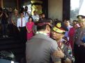 Kapolda Jatim baru, Irjen Pol Luki Hermawan hadir bersama istrinya yang dimulai dengan pengalungan bunga oleh Wakapolda Jatim Brigjen Pol M Iqbal dilanjutkan berjalan kaki melewati barisan Pasukan Pedang Pora.