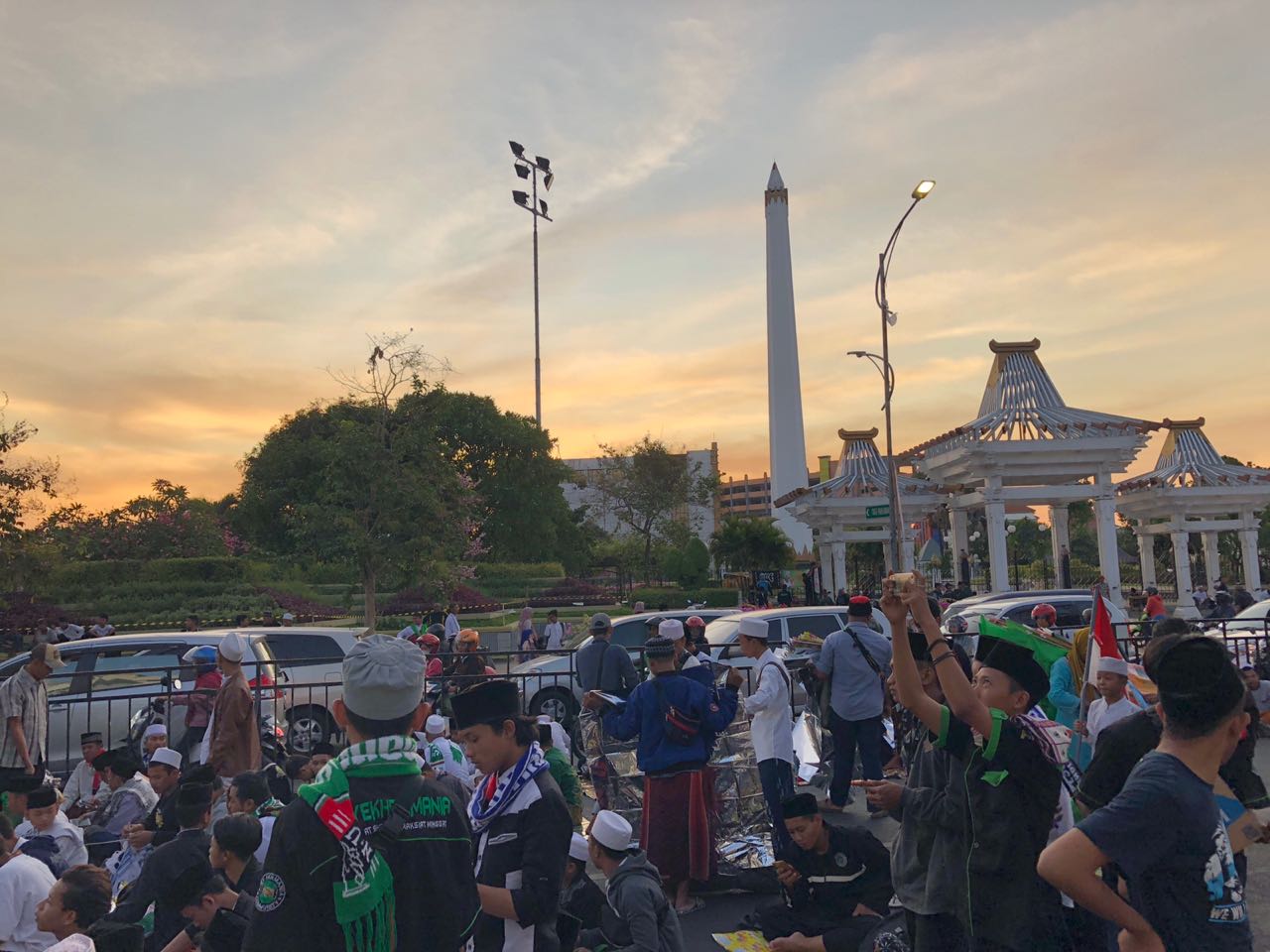 Banyak kendaraan roda dua maupun empat yang berhenti dari arah Jalan Veteran Surabaya. Ini imbas dari acara Surabaya Bersholawat di Jalan Pahlawan, Surabaya.