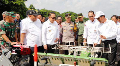 Pada kesempatan yang sama, Pj Gubernur Jatim mendampingi Menteri Pertanian RI menyerahkan bantuan alsintan secara simbolis kepada perwakilan petani dan dilanjutkan dengan melepas bantuan tersebut yang didistribusikan dengan 20 unit truk menuju kabupaten/kota di Jawa Timur. Sebelumnya, diawali dengan pengecekan bantuan alsintan yang akan diserahkan.
