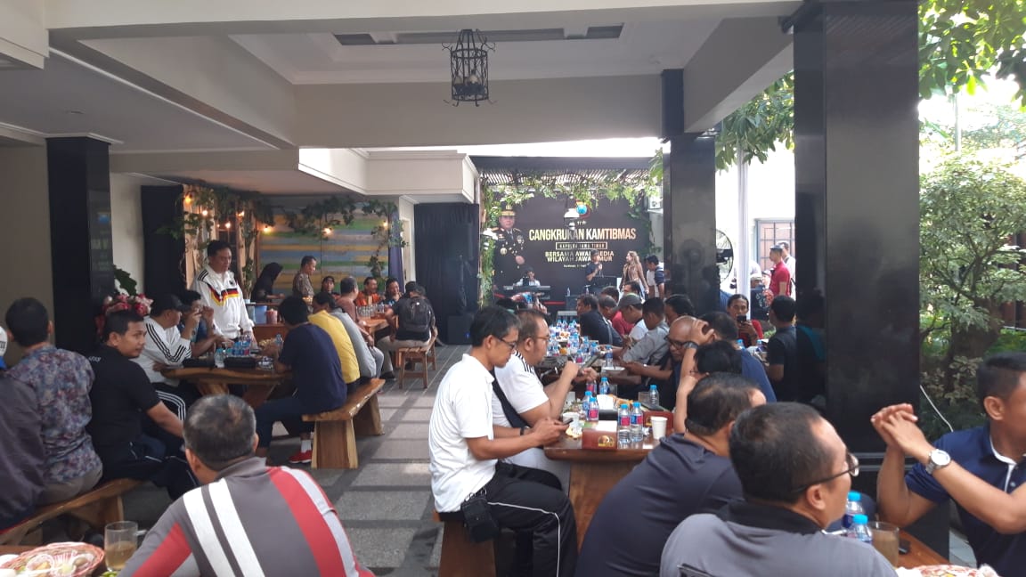 jatimnow.com - Cangkrukan digelar Kapolda Jawa Timur Irjen Pol Luki Hermawan dengan wartawan, Sabtu (15/9/2018).