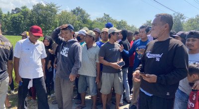 Proses rekonstruksi yang digelar Rabu siang itu, sempat molor karena banyaknya massa yang berusaha mendekati lokasi rekonstruksi di desa Ngumpul.