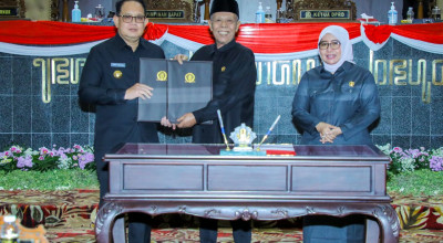 Raperda ditandatangani oleh Pj Gubernur Adhy, Ketua DPRD Jatim Kusnadi, Wakil Ketua DPRD Jatim Anik Maslachah, serta Wakil Ketua DPRD Jatim Achmad Iskandar.