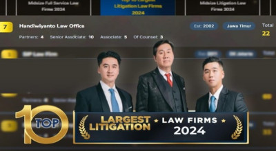 jatimnow.com - Kantor Hukum di Surabaya, Handiwiyanto Law Office (HLO), masuk 10 besar ajang 'Top 100 Indonesian Law Firms 2024' kategori kategori Largest Litigation Practice Law Firm Of The Year.