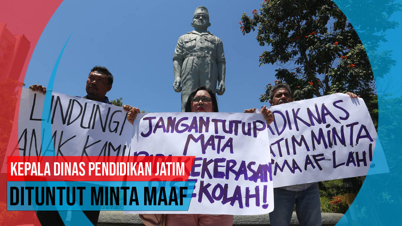 Budi Sugiharto dan Elisa Ernawati serta suaminya menuntut Kepala Dinas Pendidikan Jawa Timur Saiful Rachman memimta maaf kepada korban, RA, ZU dan ZA.