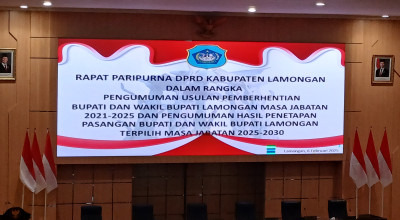 jatimnow.com - DPRD Lamongan mengagendakan paripurna penetapan dan usulan pelantikan Bupati-Wakil Bupati terpilih Yuhronur Efendi dan Dirham Aksara Akbar.
