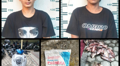 Kedua pelaku kemudian dilakukan penahanan dan pemeriksaan. Dari tangan pelaku, polisi mengamankan barang bukti berupa 3 set alat pancing, 46 ekor ikan Nila, 83 ekor ikan Gurami, 1 karung warna putih dan 1 unit sepeda motor. Korban sendiri mengalami kerugiaan hingga jutaan rupiah.
