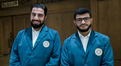 Tahun ini, dua mahasiswa asal Palestina, Ahmed Eliaan Syakir Abuajwa dan Ibrahim M. M. Abusalem, memulai pendidikan spesialis di UNAIR.