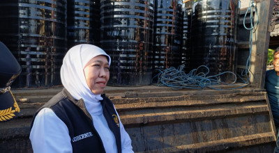 jatimnow.com-Gubernur Jawa Timur Khofifah Indar Parawansa menyerahkan bantuan 300 drum aspal kepada Pemerintah Kabupaten Tulungagung. Bantuan ini diberikan untuk mendukung perbaikan infrastruktur jalan di wilayah tersebut. Proses perbaikan infrastuktur jalan ini menggunakan skema sharing. Pihak Pemprov membantu aspal sedangkan kebutuhan lain seperti tenaga, pasir serta koral akan dipenuhi Pemkab.
