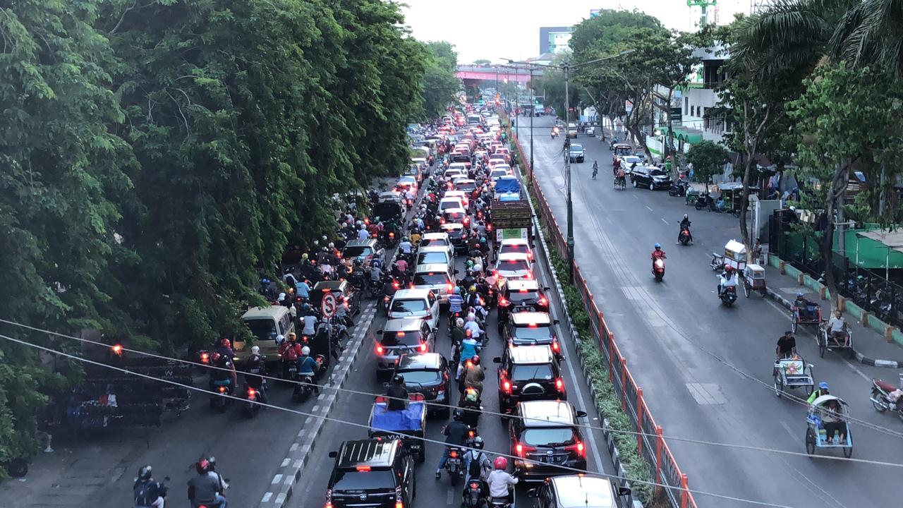 jatimnow.com - Lalu lintas sekitar stasiun Wonokromo, Surabaya, Senin (15/10/2018). Lalu Lintas di kawasan ini terpantau ramai lancar ada peningkatan volume kendaraan di waktu jam pulang kerja.