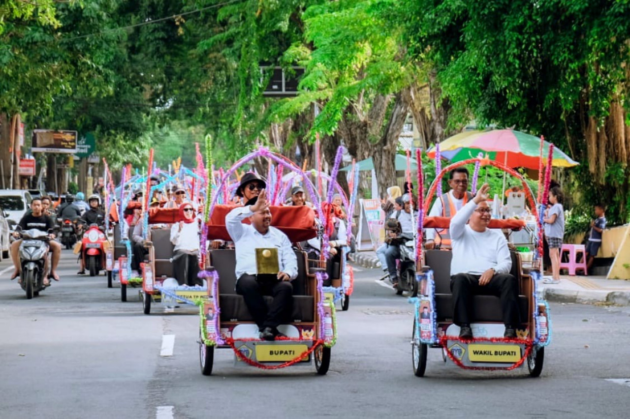 Bupati Gresik Fandi Akhmad Yani bersama Wakil Bupati Asluchul Alif turun langsung memimpin kirab yang diikuti jajaran Forkopimda, kepala organisasi perangkat daerah (OPD), serta para petugas kebersihan. Dengan menaiki becak listrik, keduanya memimpin iring-iringan dari Gelora Joko Samudro (GEJOS), melintasi Jalan Veteran, Jalan Panglima Sudirman, dan Jalan J.A. Suprapto, hingga berakhir di Wahana Ekspresi Poesponegoro (WEP).