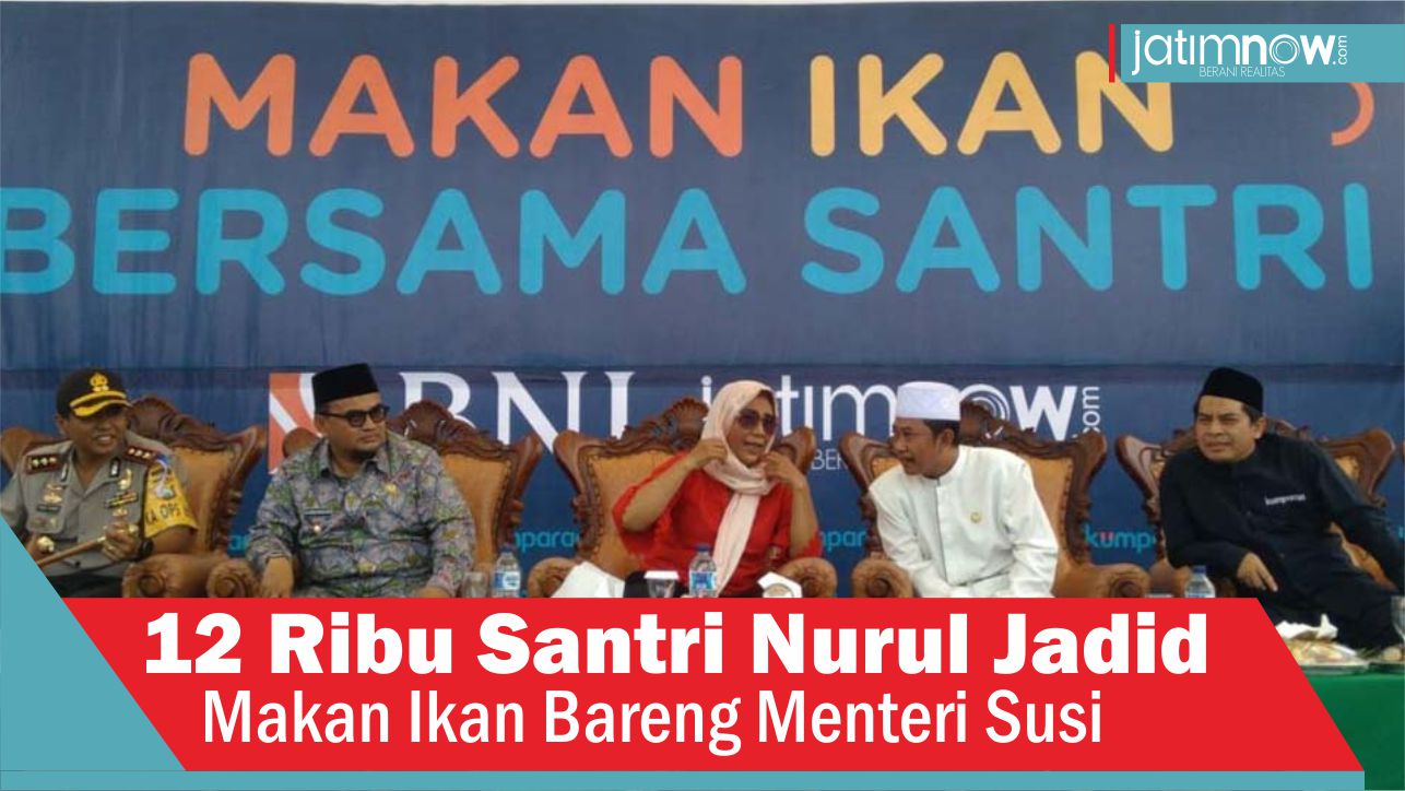 jatimnow.com - 12 ribu santri Pondok Pesantren Nurul Jadid, Paiton, Probolinggo makan ikan bareng Menteri Kelautan dan Perikanan Susi Pudjiastuti, Jumat (2/11/2018) pagi.