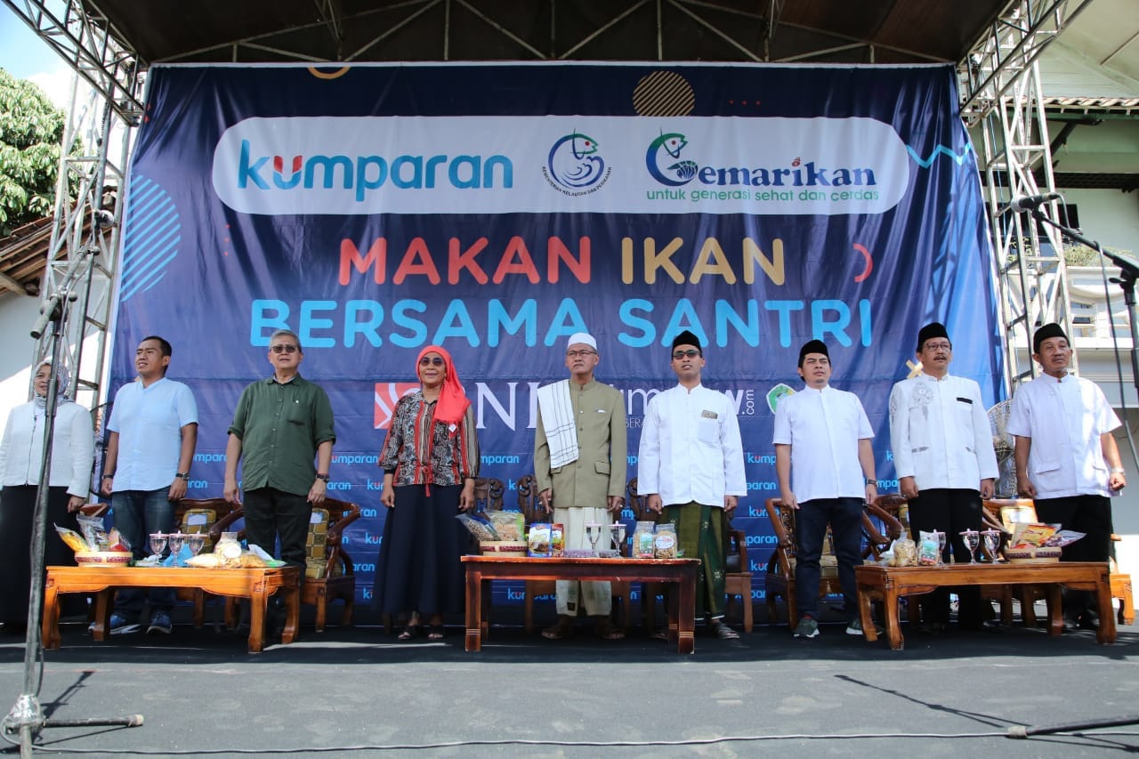 Road show Makan Ikan Bersama Santri ini kerjasama dari Kementerian Kelautan dan Perikanan (KKP), Gemarikan (Gerakan Memasyarakatkan Makan Ikan), Ponpes Darussalam Blokagung, kumparan.com, jatimnow.com dan BNI.