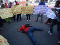 jatimnow.com - Puluhan orang yang mengatasnamakan dirinya 'Aliansi Rakyat Surabaya Menggugat' menggelar aksi di depan Mapolrestabes Surabaya, Jumat (16/11/2018). Selain melakukan orasi, massa juga menggelar aksi teatrikal.