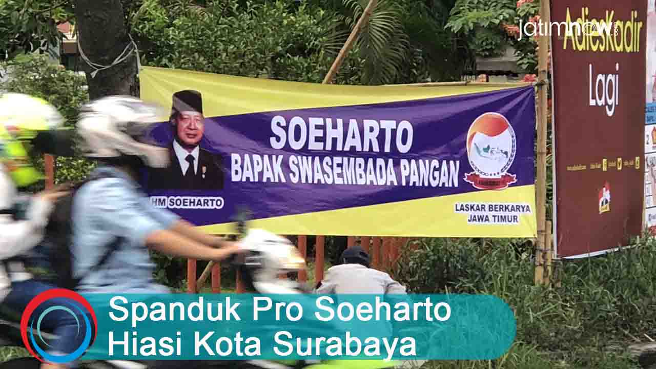 jatimnow.com - Spanduk bergambar mantan Presiden Soeharto terpasang di Kota Surabaya.