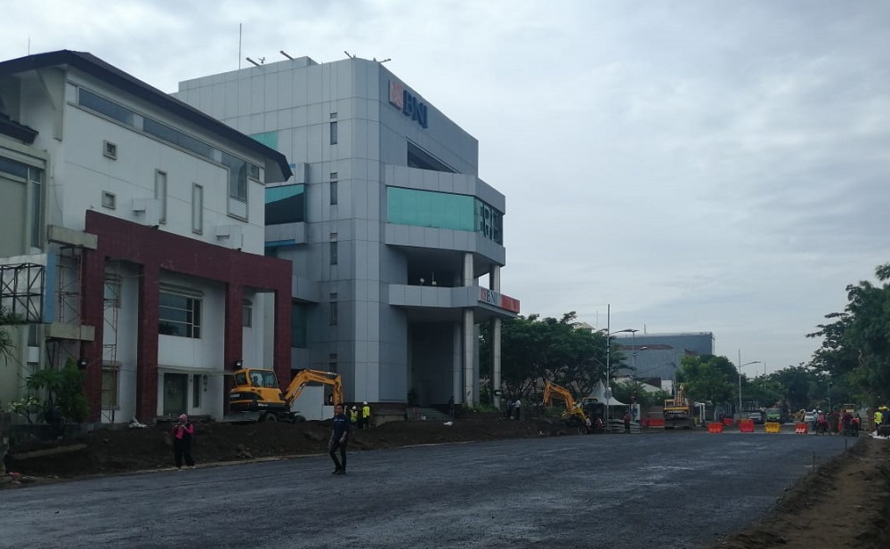 "Jalan yang tersambung nantinya tinggal proses pengaspalan. Namun hal itu akan dilakukan secara bertahap karena di sisi sebelah barat masih ada kubangan, lubang besar yang berpotensi terjadi penurunan dan sebagainya," urainya.