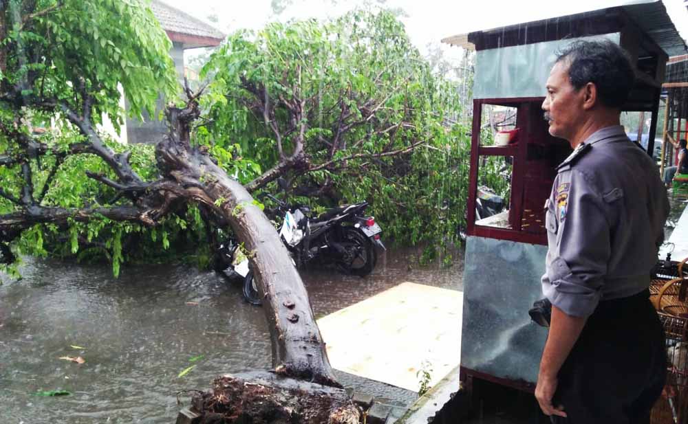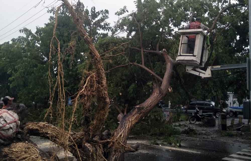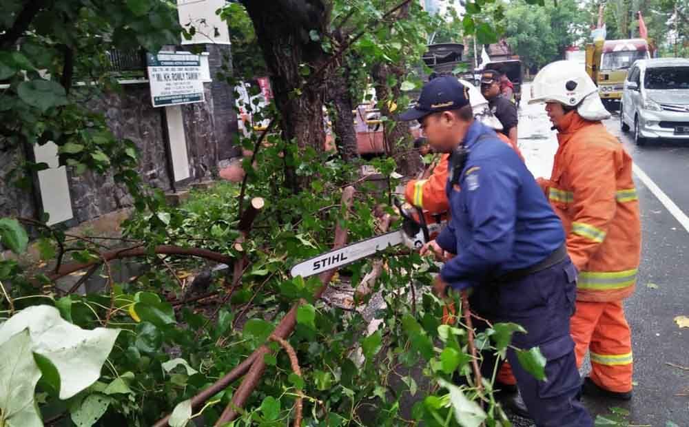 Tiga motor tertimpa pohon tumbang di Simokerto
