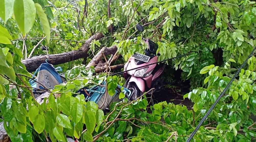 Mobil Daihatsu Sigra penyok akibat tertimpa pohon tumbang di Jalan Prapen
