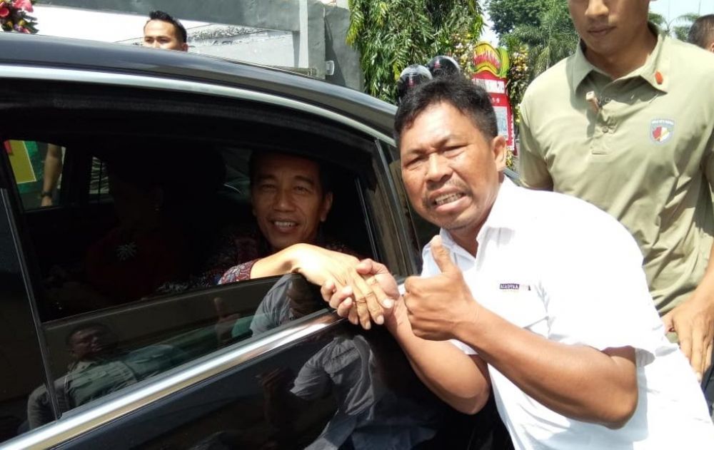 Dan ia pun berteriak saat mobil Jokowi melewati di depannya. Jendela mobil Jokowi saat itu dalam posisi terbuka.