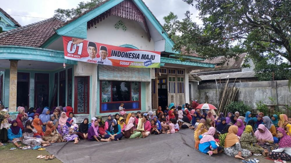 jatimnow.com - Sekitar 300 ibu-ibu menghadiri sosialisasi dan konsolidasi yang digagas Relawan Pertiwi (Perempuan Tangguh Jokowi) di rumah salah seorang relawan di Desa Sanankerto, Kecamatan Turen, Kabupaten Malang, Senin (4/3/2019).