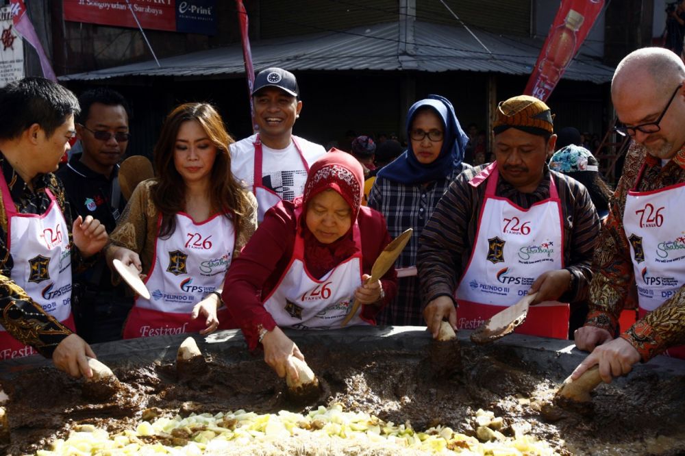 Seperti terlihat saat membuka Festival Rujak Uleg di Kembang Jepun, Minggu (17/3/2019). Eri terlihat di belakang wali kota yang tengah menguleg.