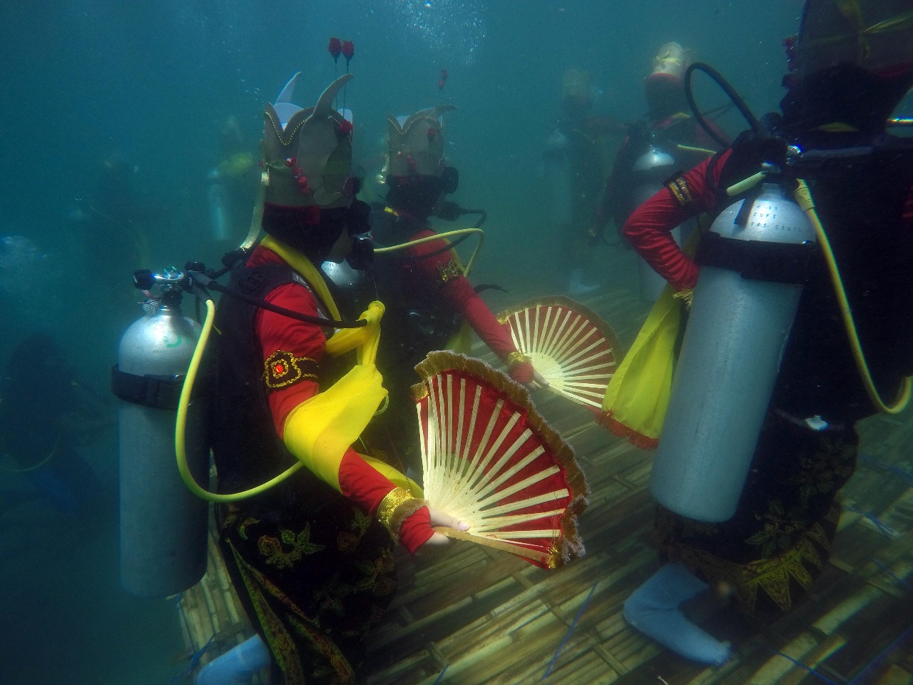 Para penari dan pemusik ini merupakan mahasiswa Universitas Brawijaya (UB) Malang, yang memiliki sertifikasi diving.