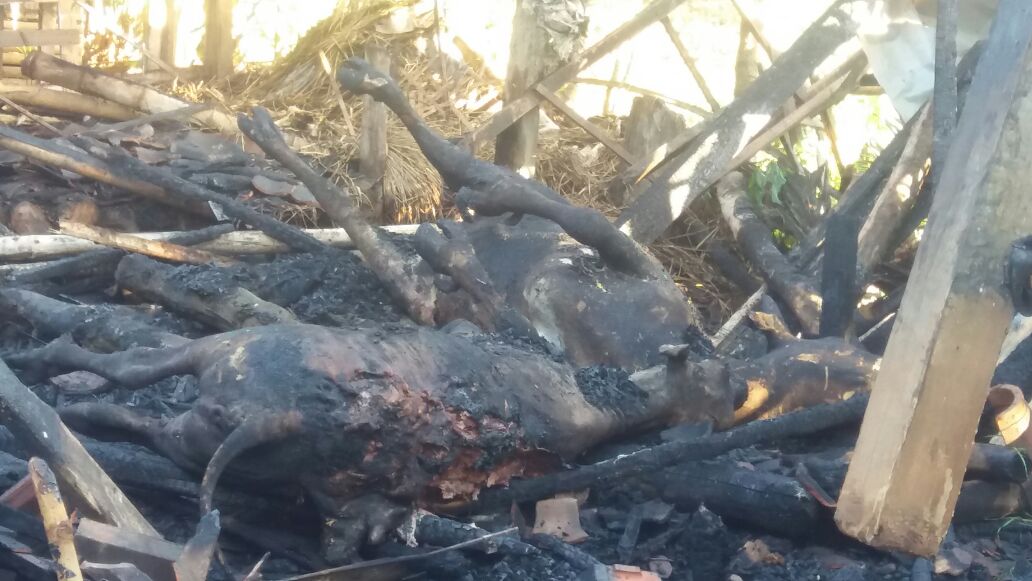 Meski sudah berupaya memadamkan api dengan alat seadanya, tak urung kedua sapi milik Sumiati tetap tidak bisa diselamatkan.