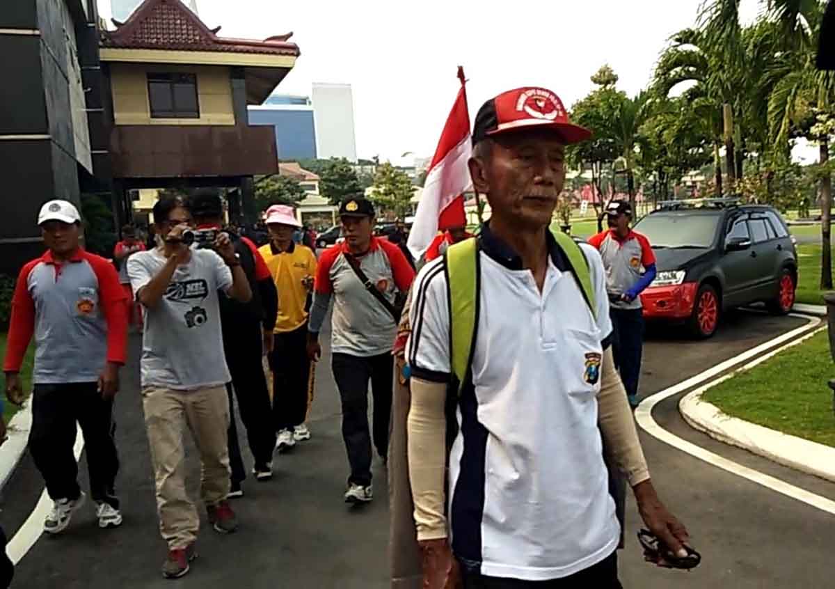 Aiptu (Purn) Soepardi warga Simo Pomahan Baru, Surabaya ini membulatkan tekadnya untuk berjalan kaki dari Mapolda Jatim hingga ke Mabes Polri.