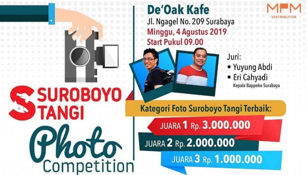 Tema yang dilombakan adalah 'Suroboyo Tangi', dengan hadiah jutaan rupiah itu peserta harus membayar biaya pendaftaran Rp 30 ribu. Dalam poster digital yang dilihat jatimnow pada Jumat (2/8/2019) sore, terdapat logo MPM distribution.