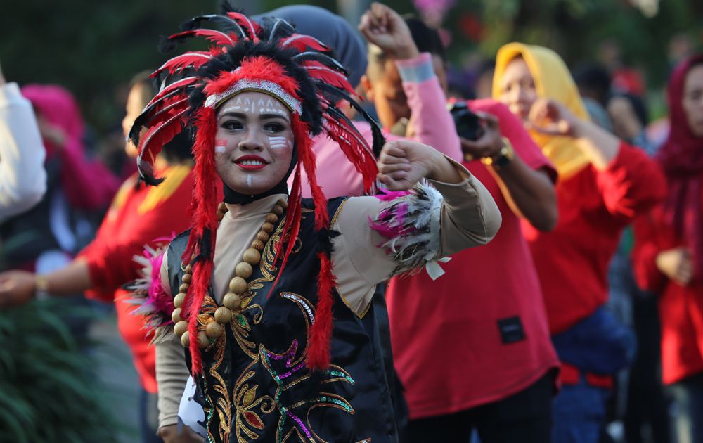 Program kali ini terasa berbeda lantaran dimeriahkan oleh lomba Gemu Famire atau senam Maumere ditambah dengan pakaian peserta yang unik-unik.